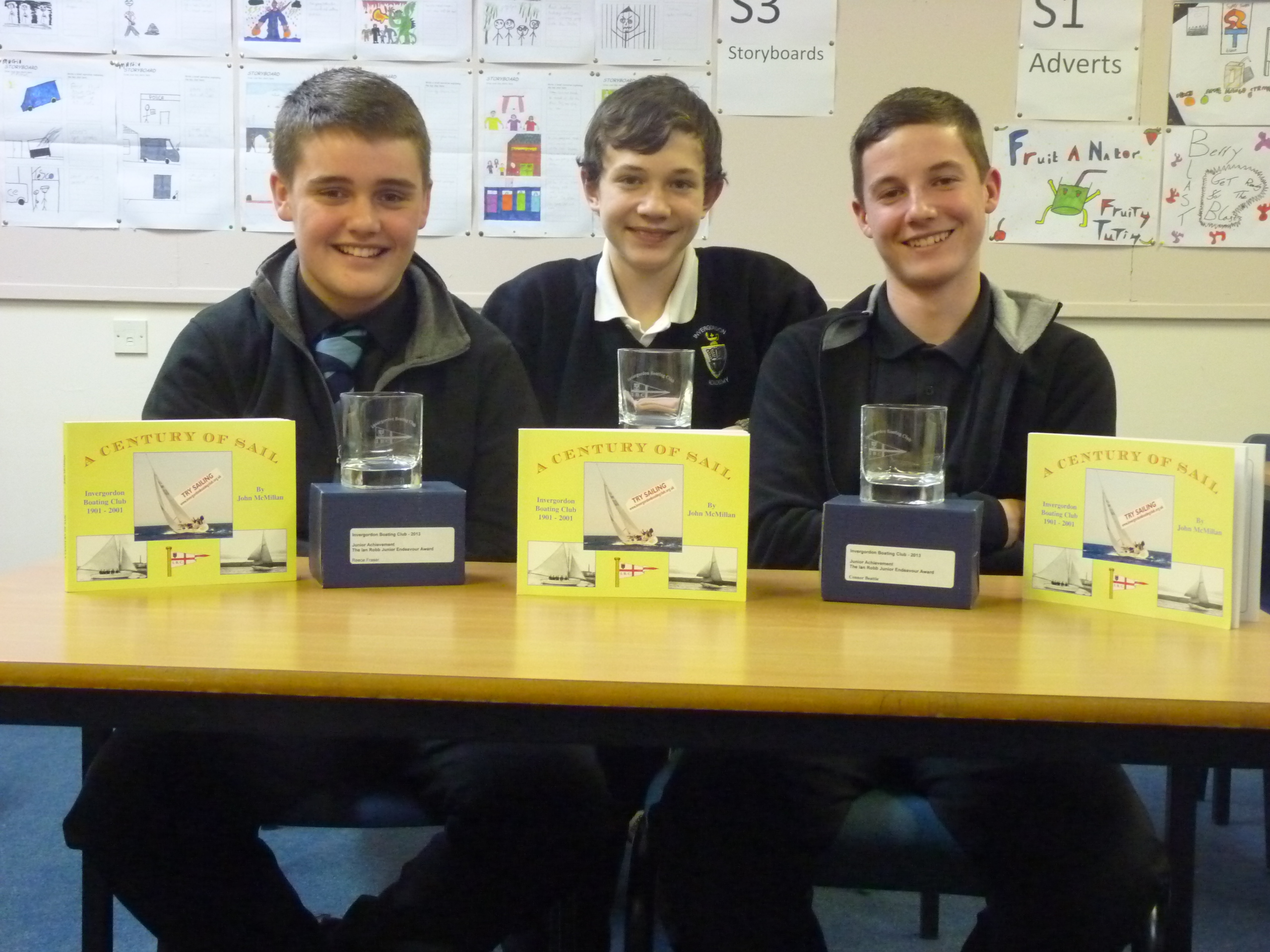 Winners of the Ian Rob Junior Endeavour Award: (left to right) Reece Fraser S4, Finlay Clarke S2 and Connor Beattie S4.