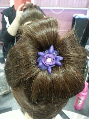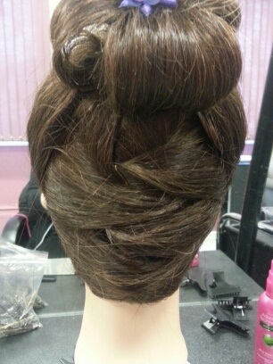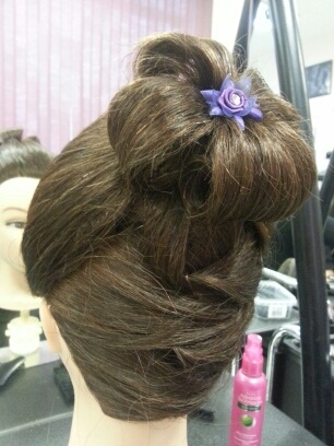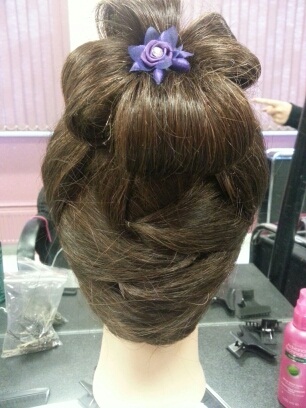 The competition was in a large hall along with other competitions such as “beauty,” “make-up” and “nails.” Lauren’s first reaction on seeing the scale of the event was, “I can’t do this!” She was given 45 minutes to work on her “block,” a mannequin with real hair attached. She had brought all of her own tools and sprays with her.