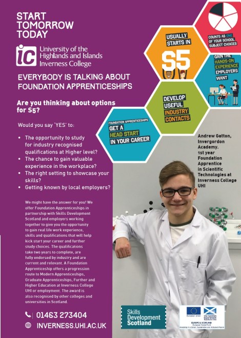 Our very own Andrew Gatton, S5, is the star of UHI’s Foundation Apprenticeship poster campaign!