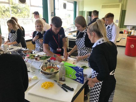 On Wednesday 12th September the academy welcomed 4 active members of the Royal Navy for a morning of cooking challenges. Nearly 30 pupils had their skills tested through a ‘Ready Steady Cook’ exercise whereby they had to create 2 or 3 dishes from a bag of surprise ingredients. They were then shown some practical skills the chefs use whilst on service before finding out more about career opportunities in the Royal Navy. The academy would like to thank them for coming in and look forward to working more with them in the future.