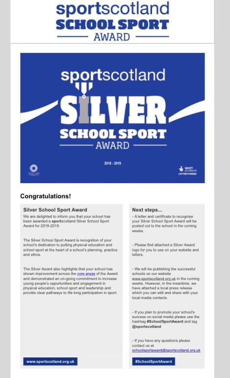 Invergordon Academy has been awarded the Silver School Sport Award after it was recognised for its commitment to school sport and PE by the Sport Scotland governing body. #SchoolSportAward
