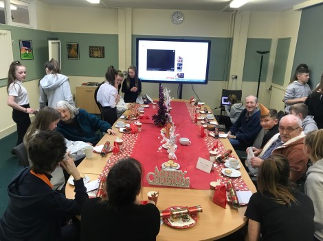 Invergordon Academy welcomed elderly residents from Mull Hall and Castle Gardens for a Christmas party organised by the S1 pupils. The money raised by them at their Christmas Fair was used to buy food, drink, decorations and presents. The pupils spent time asking questions and playing games (bingo!) with the visitors. Well done to everyone involved and thank you to Mull Hall and Castle Gardens for coming through.