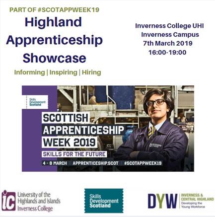 Head along to Inverness College UHI on Thursday evening to check out the apprenticeships available in the Highlands and support on offer to our pupils.