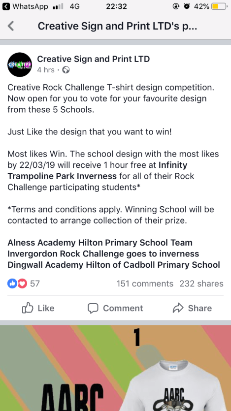 Please follow the Facebook link below, like the Invergordon Academy tshirt design and vote for picture number 5. Your support means a lot! Thank you 😀.