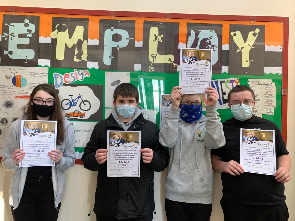 In December last year, third year pupils from Invergordon Academy’s Employability class had a brainwave and decided to make and sell homemade crafts to raise money for the Highland Hospice, raising about £180. As a ‘thank you’ the Highland Hospice Chief Executive Officer commissioned certificates for the pupils. The class in question want to continue fundraising with a Valentine’s Day and Easter craft sale.