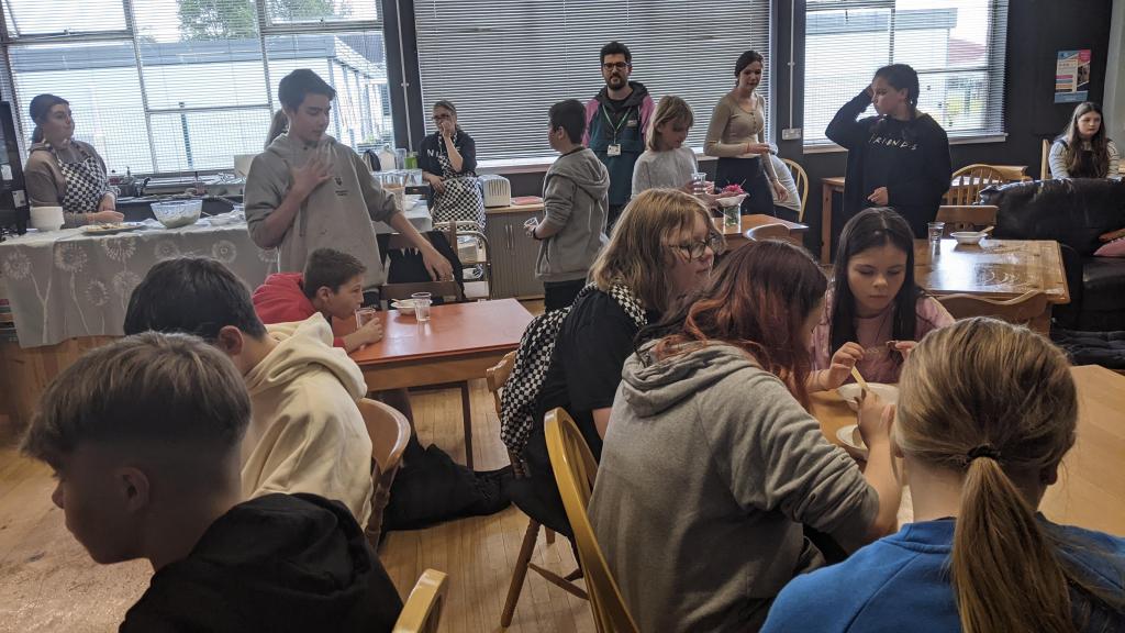 - The final group tried different potato dishes on a tasting plate – Scottish macaroons, potato salad, Spanish omelette – all delicious recipes made by pupils from potatoes grown in the school garden. This was held in the school’s ‘Café One’, with background music provided by pupils from the Music Department.